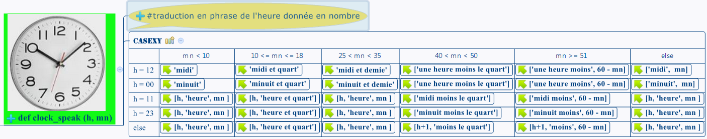A second important use is the production of programms in many languages, like python, sql, and managing the tests cases : and which compile correctly , once the '!' notation is defined, or even what 'n(' means. Also note that many syntactic variants are available in the KM2 source code, like the 'WHERE' or the 'CASE' with a table shape :.
